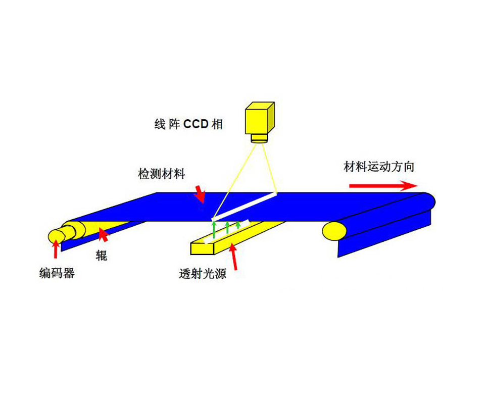 系統整體采用工業CCD相機在線圖像掃描的工作原理,在生產線高速生產的狀態下,采用特定波長的高亮LED工業線性聚光光源照射產品表面(對于不透明的薄膜產品采用反射的檢測原理),通過架設在生產線上的線陣相機實時掃描并采集光源照射處的產品圖像。11
